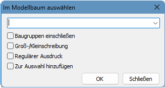 Teile und Baugruppen im Modellbaum anhand eines Suchbegriffs auswählen.