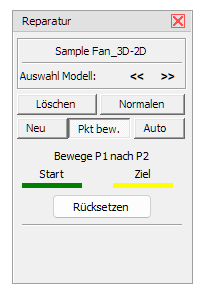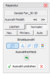 Im Werkzeug Reparatur kann nur ein Modell angezeigt und repariert werden. Sind mehrere Modelle vorhanden, klicken Sie auf die Schaltfläche << oder >> bis das gewünschte Modell angezeigt wird.