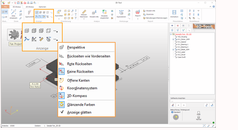 Die Funktionen zum Ändern der Darstellung von Modellen finden Sie in der Registerkarte 3D-Modus in der Gruppe Anzeige.