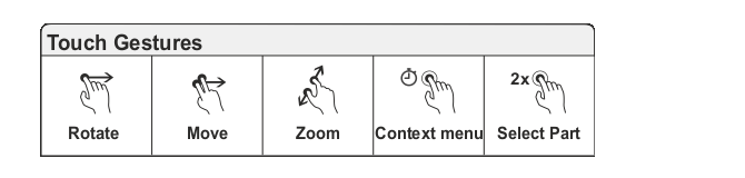 - Press your finger on parts, assemblies, and models in the Model Tree for approximately one second, and then release it.