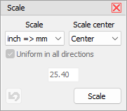 Scale uniform in x, y and z. Deactivate this option during the Custom scale to enter different values for x, y, and z .