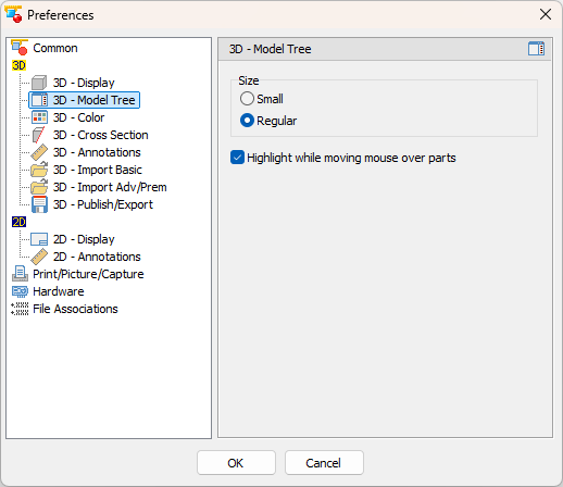 Highlight parts and assemblies when moving the mouse over their names in Model Tree.