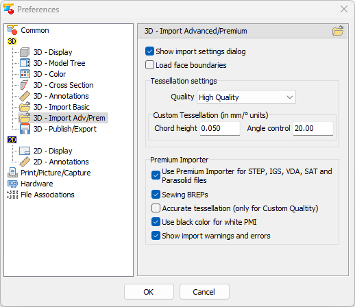 - Use Premium-Importer for STEP, IGS, VDA, SAT and Parasolid files (Default: Active)