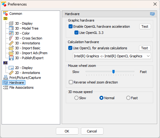 When enabling the OpenGL 3.3 option for the first time, you can perform a short, one-minute test that tests the display performance of the graphics card. It is recommended that you perform this test to ensure that OpenGL 3.3 acceleration is working properly.