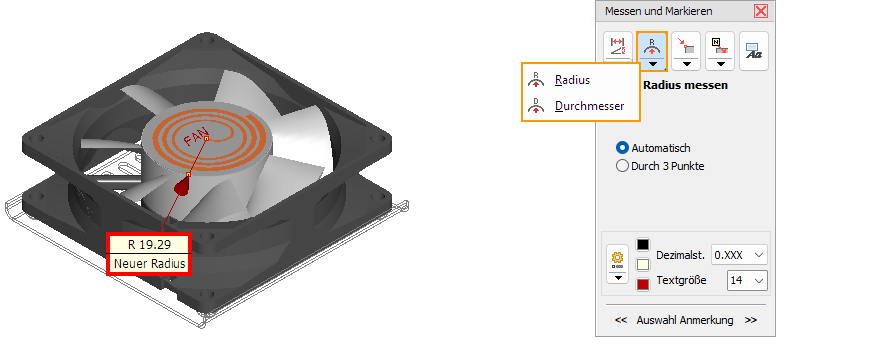 Messen von Radius und Durchmesser