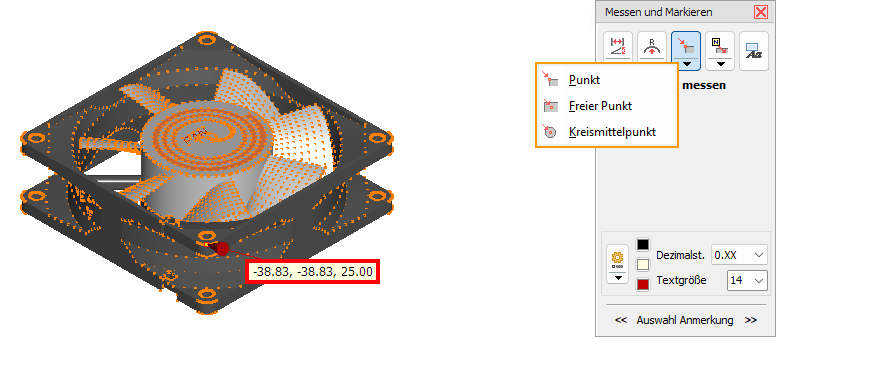 Messen Sie die X, Y und Z-Koordinaten eines freien Punktes (kein Netzpunkt).