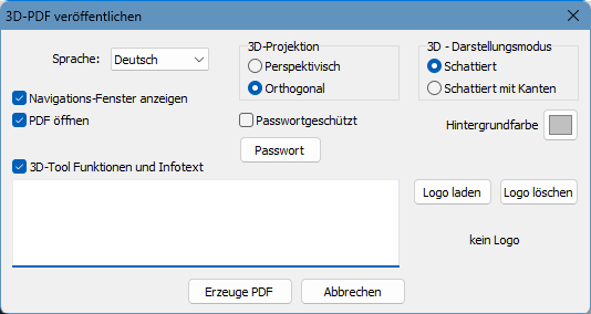 Einstellungen beim Veröffentlichen der 3D-PDF-Datei