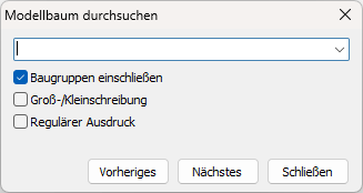 Die Schaltfläche Vorheriges kehrt die Suche um und sucht im Modellbaum aufwärts.