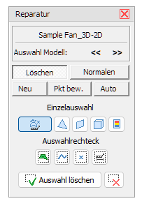 Im Werkzeug Reparatur kann nur ein Modell angezeigt und repariert werden. Sind mehrere Modelle vorhanden, klicken Sie auf die Schaltfläche << oder >> bis das gewünschte Modell angezeigt wird.
