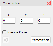 Geben Sie in die drei Eingabefelder x, y und z die gewünschten Werte für die Verschiebung ein.