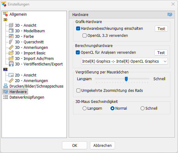 OpenCL nutzt den Graphikprozessor (GPU) und beschleunigt die Berechnungen für die Kollisionsanalyse, die Hinterschnittanalyse und die Wandstärkenanalyse. Dies führt zu einer gesteigerten Performance und effizienteren Durchführung komplexer Analysen.