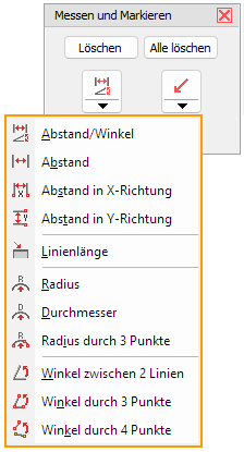 Abstand/Winkel/Radius/Durchmesser messen zum Messen von Abständen und Winkeln oder klicken Sie auf den kleinen schwarzen Pfeil in der Schaltfläche zur Auswahl weiterer Messfunktionen.