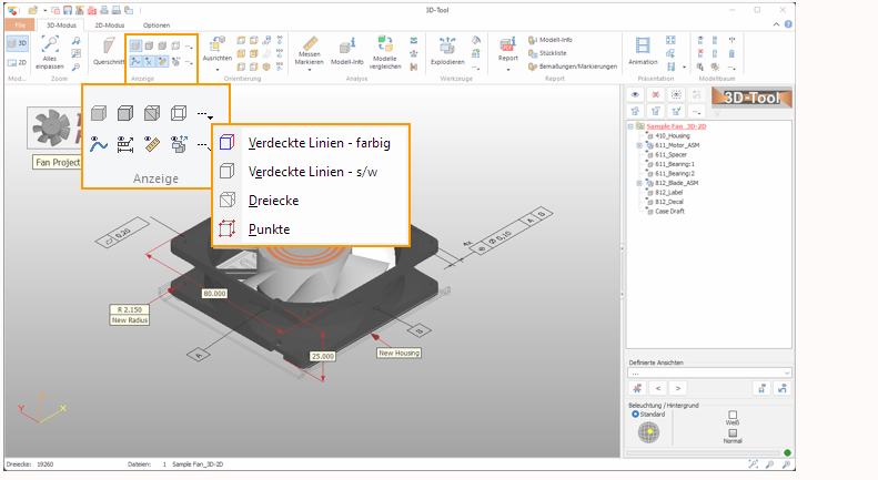 Die Funktionen zum Ändern der Darstellung von Modellen finden Sie in der Registerkarte 3D-Modus in der Gruppe Anzeige.