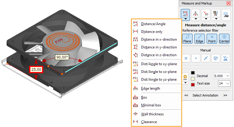 Measure Distance, Angle, Edge, Boundary Box, Wall Thickness and Clearance