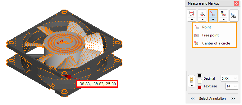 Point button to measure edge points or click the little black arrow in the button to select another measure function.