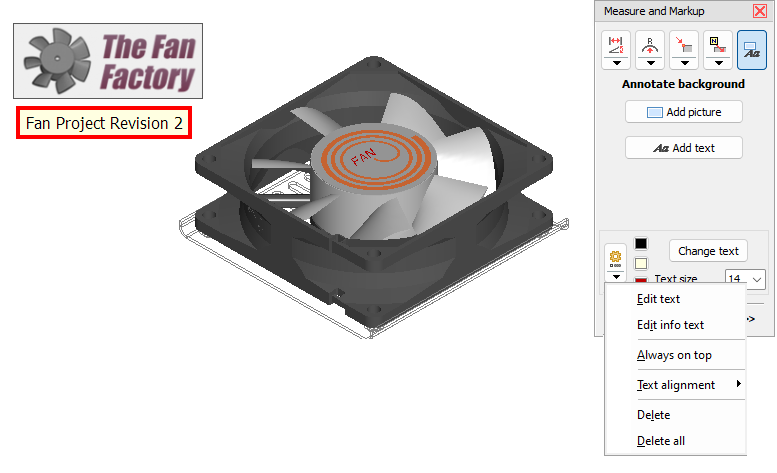 Change dimension/markup button and select Delete. - Delete all deletes all dimensions/markups and all background pictures and texts.