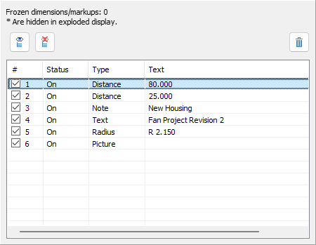 Frozen The dimension is not shown in the exploded view because it is between parts that are exploded in the current display.