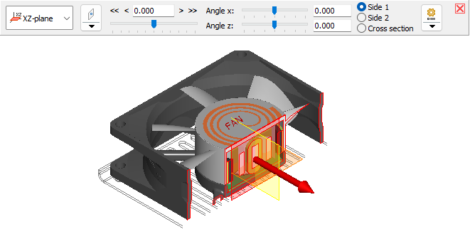 - In the section settings, choose one of the options Side 1, Side 2, or Cross section. Cross section will show only the cross section and hide both sides of the model.