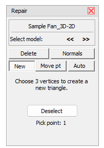 Create a new triangle by picking three edge points. To make the selection easier, the edge points of the triangles are displayed.