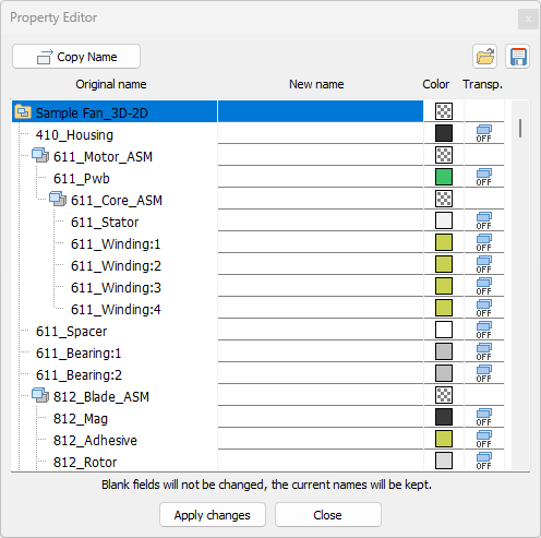 - For assemblies only the names will be transferred. However, all properties will be transferred for the parts of an assembly.
