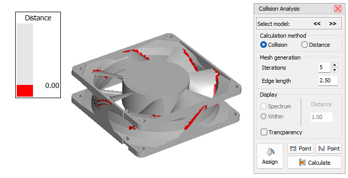 Use the Collision Analysis to check component collisions and visually represent the distances between components with color.