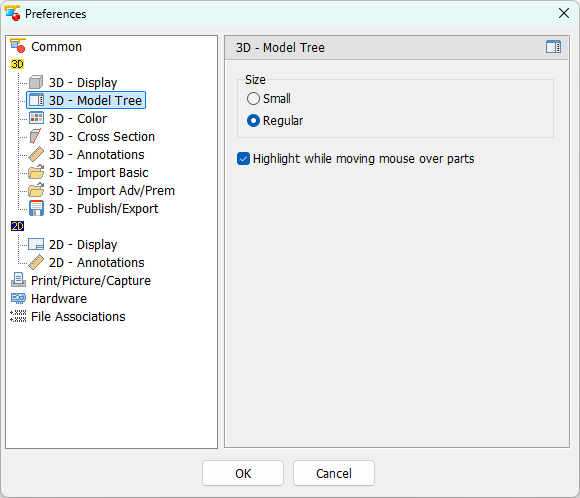 Highlight parts and assemblies when moving the mouse over their names in Model Tree.