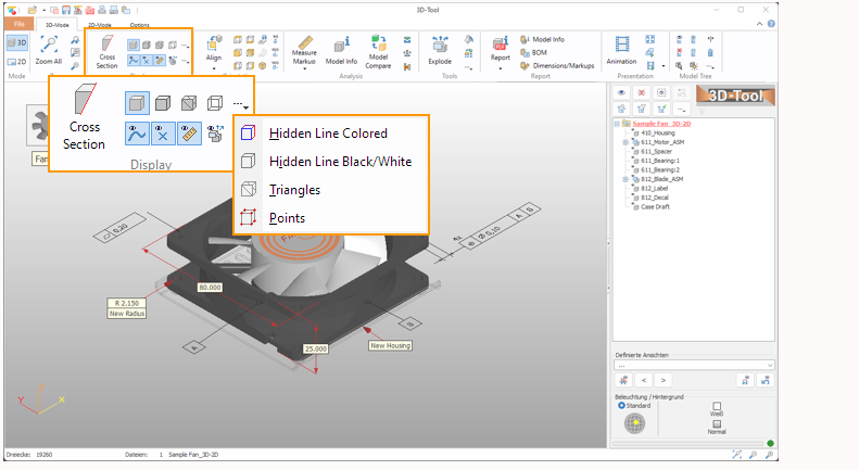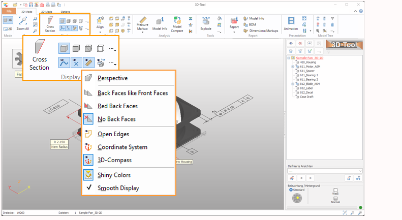 The functions to adjust the display are located in the Display group of the 3D-Mode tab.