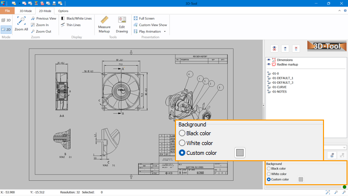 In 2D Mode change the color of the background in the right info panel.